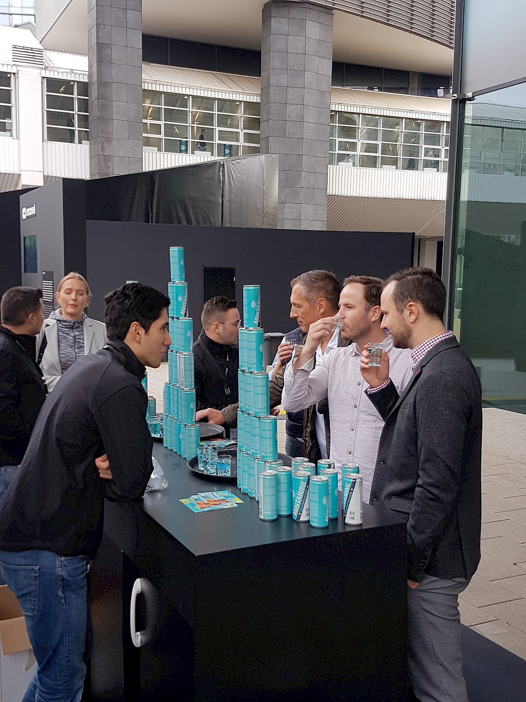 Auf dem EQ-Messestand von Mercedes-Benz auf der IAA verteilen wir insgesamt 100.000 Kostproben unserer supermodernen blauen Limonade. Denn Messe macht müde – aber MINTANINE macht munter.